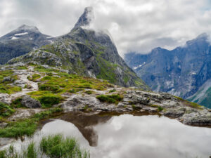 Mt Romsdalshorn reflected in a lagoon from Litlefjellet, norway