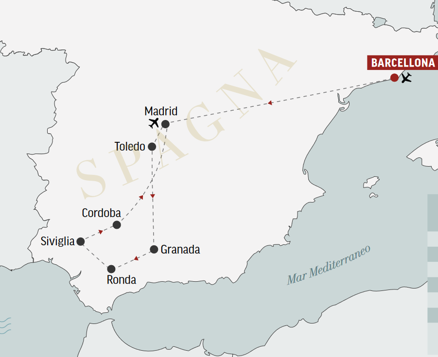 Alla scoperta di: Barcellona, Madrid, Toledo, Granada, Ronda, Siviglia, Cordoba.