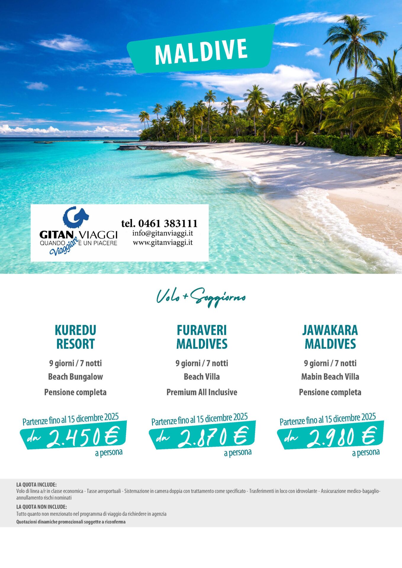 Richiedi il preventivo a info@gitanviaggi.it – tel. 0461 383111 – WhatsApp 0461383111