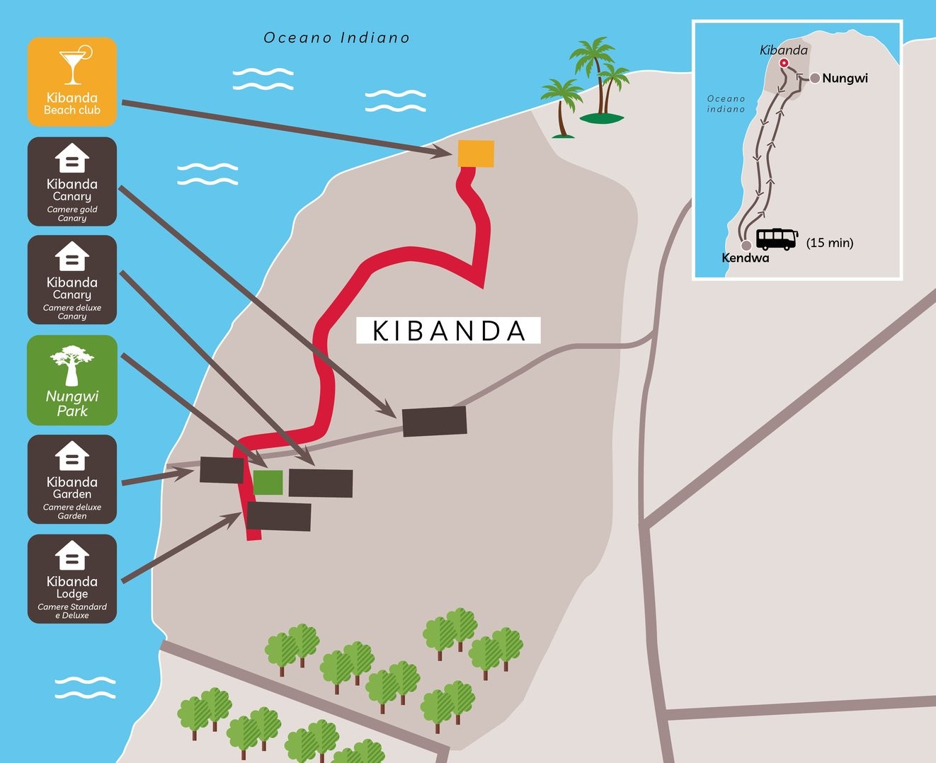 - Il ristorante del Kibanda Beach Club: previa prenotazione, serve il pranzo a buffet. A cena, è disponibile con servizio à la carte a pagamento (una cena inclusa per soggiorno, da lunedì a venerdì oppure sabato e domenica entro le ore 20, con menù prestabilito dall’hotel e sempre su prenotazione).