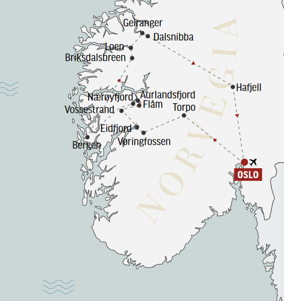 Alla scoperta di: Oslo, Eidfjord, Flam, Sognefjord, Bergen, Loen, Geirangerfjord.