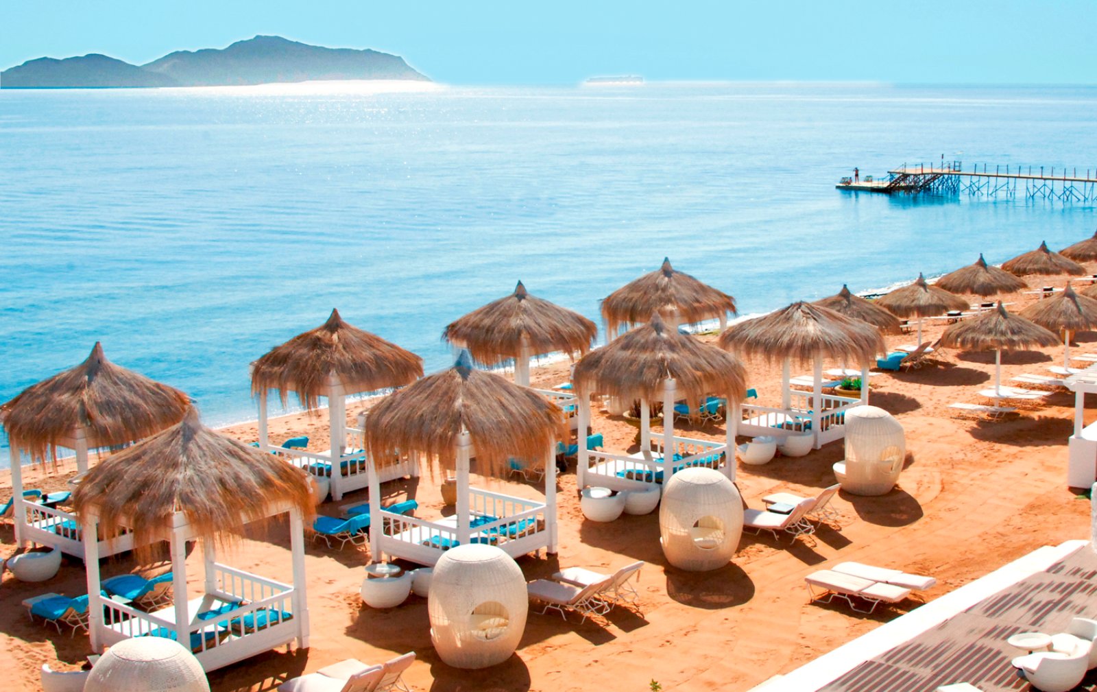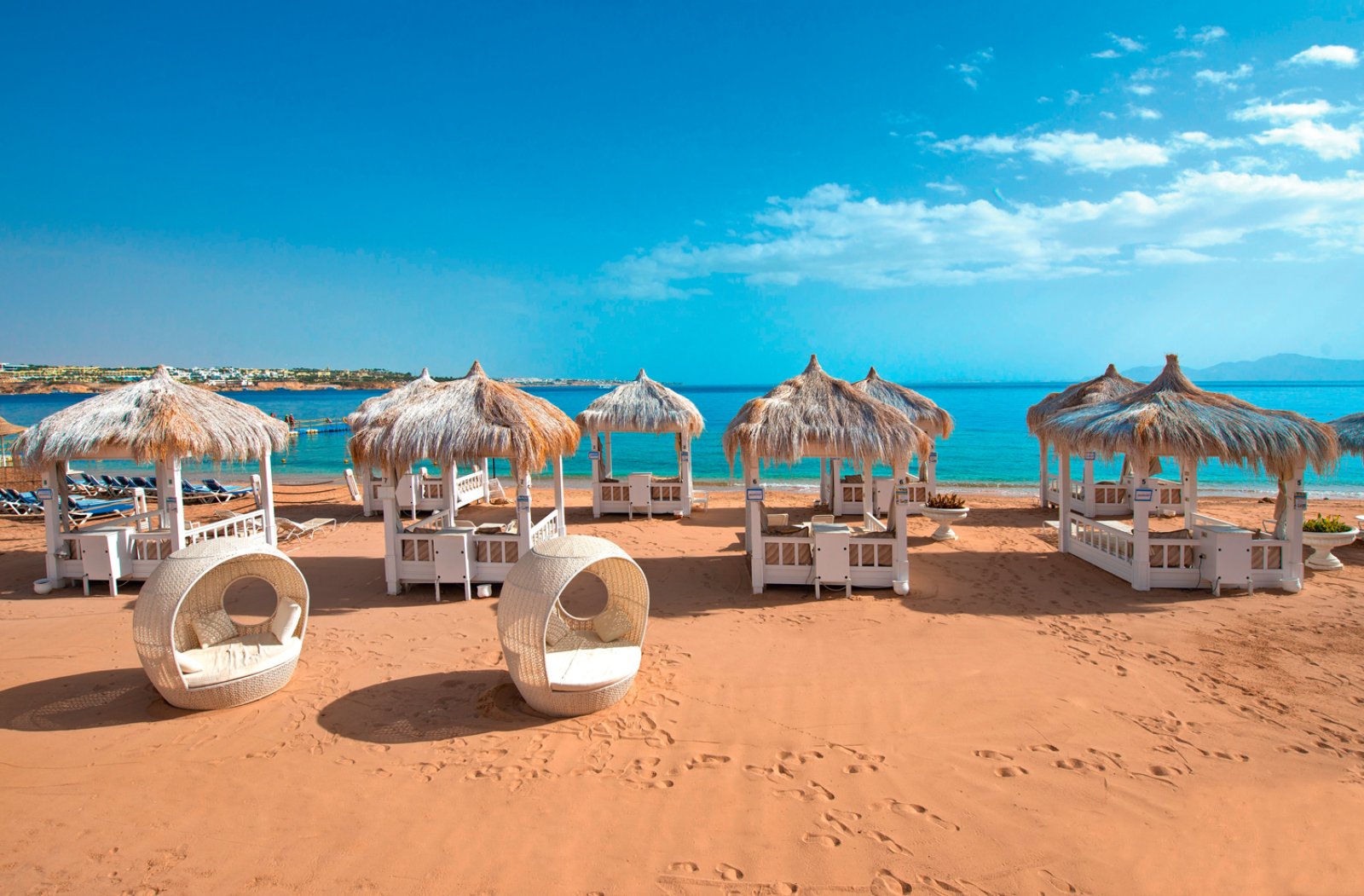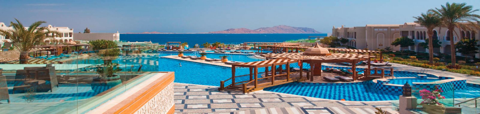 Si trova a circa 8 km dall’aeroporto e la località di Naama Bay è a circa 11 km. La struttura si sviluppa su 6 livelli digradanti verso il mare con le camere che si distribuiscono ai lati delle grandi piscine. Il pontile consente un facile accesso alla ricca barriera corallina. Le 421 camere del resort sono tutte dotate di servizi privati con asciugacapelli, climatizzazione regolabile, TV satellitare, telefono, connessione WiFi, cassetta di sicurezza, set per la preparazione di tè e caffè all’americana, accappatoio e ciabattine da camera, balcone o terrazzo. A disposizione diverse tipologie: superior vista giardino, superior vista mare laterale o piscina, deluxe vista mare laterale o piscina (massima occupazione 2 adulti e 1 bambino o 3 adulti), deluxe swim up (riservate ai maggiori di 16 anni), family suite (possono ospitare fino a 2 adulti e 2 bambini o 3 adulti e un bambino). Le piscine del resort sono 5, di cui una per bambini, tutte riscaldate durante i mesi invernali. Dispone di un campo da tennis, campo da calcetto, campo da beach volley, ping-pong, bocce, minigolf, freccette, campo polivalente, palestra (solo per maggiori di 16 anni), miniclub internazionale da 4 a 12 anni, discoteca e anfiteatro. A pagamento: diving center, centro SPA (solo per maggiori di 16 anni; utilizzo di sauna e bagno di vapore incluso). Il ristorante principale con servizio a buffet propone piatti della cucina internazionale e i 7 ristoranti à la carte (a pagamento) offrono vari tipi di cucina: italiana, francese, greca, indiana, thai, orientale, di pesce. Cenoni di Natale e Capodanno inclusi.